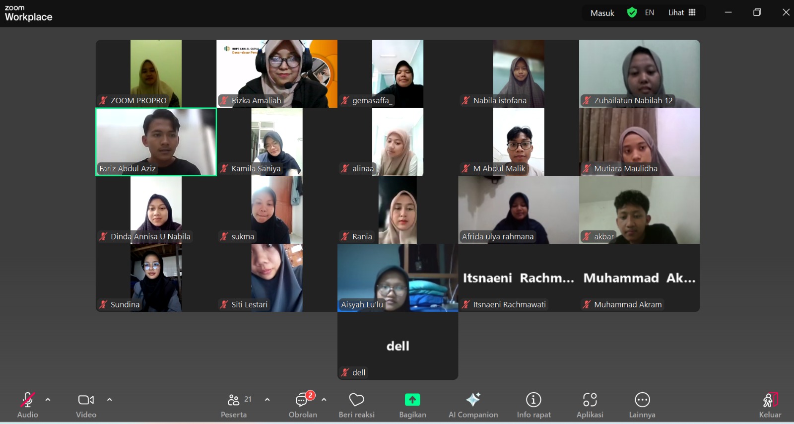 Pertemuan kedua dilaksanakan pada Sabtu, 11 Oktober 2025 secara daring dengan menghadirkan pemateri yang sama. Pada tahap ini, pembahasan difokuskan pada Teknik Menulis Bagian-Bagian Artikel serta Analisis dan Diskusi Hasil Penulisan. Melalui pendekatan interaktif, peserta dilatih untuk menulis bagian demi bagian dari artikel ilmiah serta berdiskusi mengenai kesalahan umum dalam penyusunan naskah akademik. Antusiasme tinggi dari para peserta menunjukkan semangat belajar yang luar biasa dan tekad kuat untuk mengasah kemampuan menulis secara profesional.
