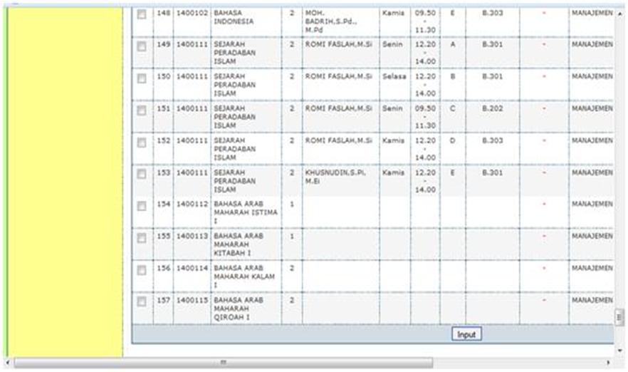 Pilih mata kuliah yang kita inginkan dengan memberi centang pada kotak kecil. Jika mata kuliah yang kita pilih sudah diberi centang maka klik input.