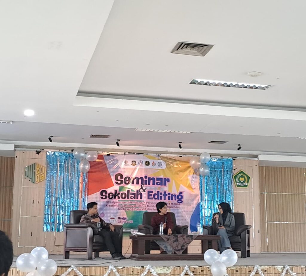 Reporter : Mawa Noviana Nadiyatus Sholichah dan Baiq Auliya Maharani PutriEditor: Rizka Amaliah SYARIAH — Himpunan Mahasiswa Program Studi Hukum Ekonomi Syariah menggelar Seminar Sekolah Editing bertema “Creatpreneur: Membangun Personal Branding Melalui Kreativitas dan Inovasi untuk Melahirkan Entrepreneur Muda yang Inspiratif dan Kompetitif” pada 16 November 2025. Acara ini menghadirkan