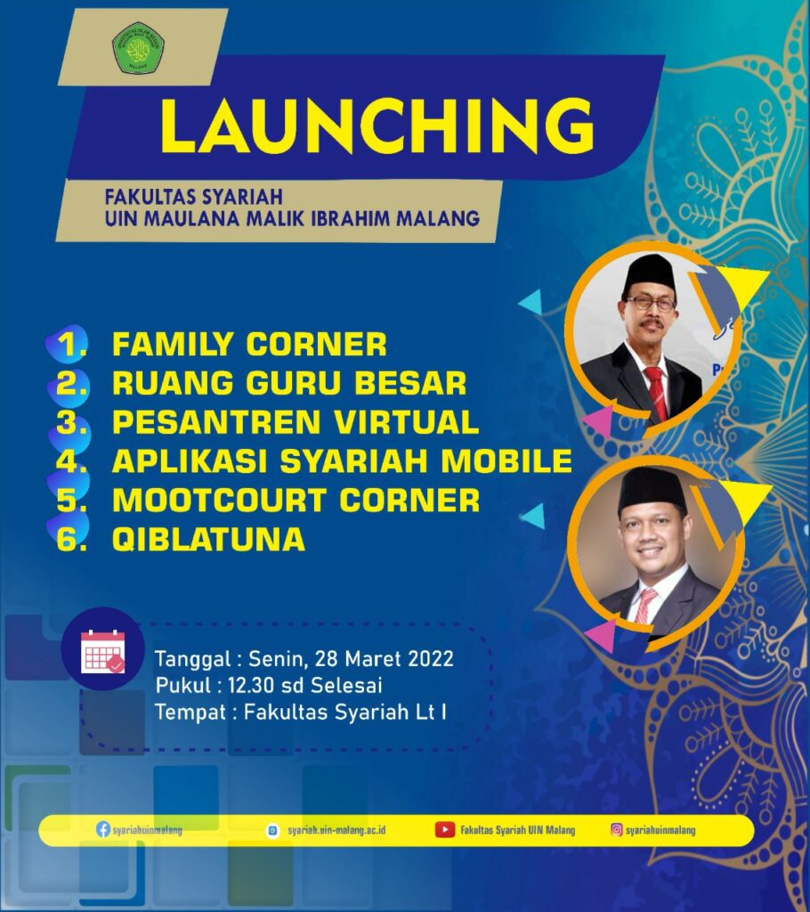 Reporter: Rizka Amaliah SYARIAH – Senin, 28 Maret 2022, Fakultas Syariah menggelar kegiatan bertajuk “Tinjauan Manajemen dan Launching Program, Aplikasi Syariah Mobile, dan Ikon-ikon Unggulan.” Dihadiri dan dilaunching langsung oleh Rektor UIN Maliki Malang, kegiatan ini melibatkan seluruh pimpinan berbagai fakultas dan UIN Maliki sebagai tamu kehormatan. Enam program, aplikasi,