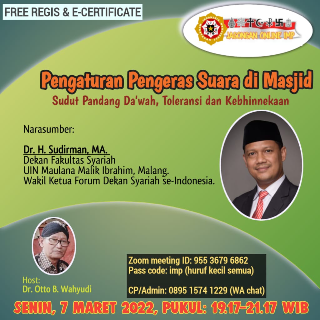 Reporter: Alif Fia Nur Jana SYARIAH – Indonesia Merayakan Perbedaan (IMP) menggelar diskusi daring bertajuk “Pengaturan Pengeras Suara di Masjid: Sudut Pandang Dakwah, Toleransi, dan Kebhinekaan”. Kegiatan yang dilaksanakan pada Senin, 7 Maret 2022 ini diselenggarakan untuk membahas kericuhan dunia maya mengenai Surat Edaran Menteri Agama Nomor 5 Tahun 2022
