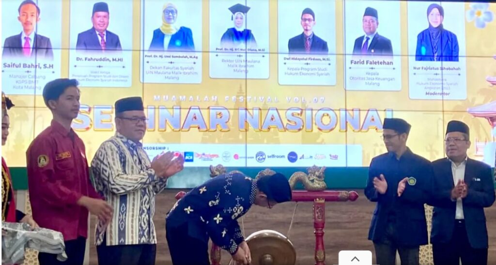 Fakultas Syariah Program Studi Hukum Ekonomi Syariah (HES) Universitas Islam Negeri (UIN) Maulana Malik Ibrahim Malang kembali menggelar Muamalah Festival Vol. 07 dengan kemasan Seminar Nasional, Kamis (30/10/2025). Bertempat di Auditorium lantai 5 Gedung Rektorat, kegiatan ini mengangkat tema “Mewujudkan Kemajuan Berkelanjutan Melalui Inovasi Hukum Ekonomi Syariah yang Berintegritas”. Ratusan mahasiswa, dosen,
