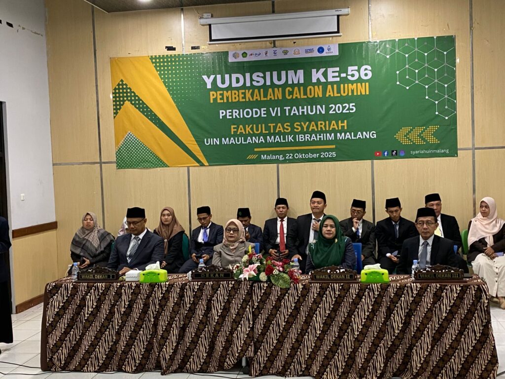 SHARIAH – Fakultas Syariah Universitas Islam Negeri (UIN) Maulana Malik Ibrahim Malang meluluskan 84 mahasiswa dalam Yudisium ke-56 dan Pembekalan Calon Alumni Periode VI Tahun 2025, Rabu (22/10/2025). Momentum ini tak hanya menjadi simbol kelulusan, tetapi juga ajang pembekalan untuk membentuk alumni yang siap menghadapi dunia kerja dengan kecerdasan intelektual,