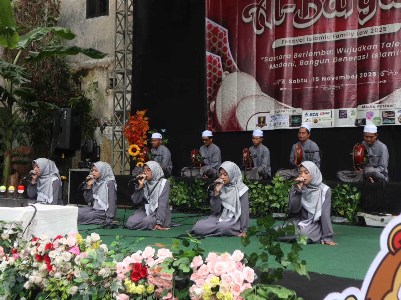 SYARIAH – Festival Islamic Family Law (FISFALA) IX resmi menutup rangkaian lomba tahun 2025 melalui penyelenggaraan Festival Al Banjari pada Sabtu (15/11/2025). Acara yang digelar di halaman samping Gedung Sport Center UIN Maulana Malik Ibrahim Malang ini menjadi puncak dari tiga cabang lomba sebelumnya, yaitu Musabaqah Hifdzil Qur’an (MHQ), Musabaqah Syarhil Qur’an (MSQ), dan Lomba Infografis. Seluruh rangkaian kegiatan diselenggarakan oleh Himpunan Mahasiswa Program Studi Hukum Keluarga Islam (HMPS HKI), Fakultas Syariah.
