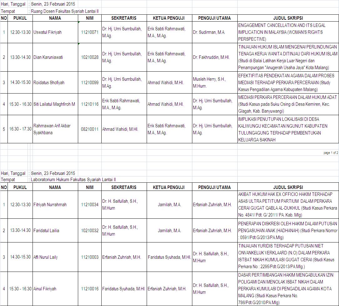 JADWAL UJIAN SKRISPSI PERIODE FEBRUARI 2015 TAHAP II