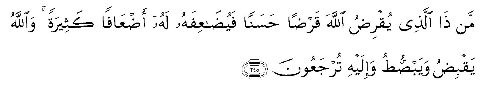 “Siapakah yang mau memberi pinjaman kepada Allah, pinjaman yang baik (menafkahkan hartanya di jalan Allah), Maka Allah akan meperlipat gandakan pembayaran kepadanya dengan lipat ganda yang banyak. dan Allah menyempitkan dan melapangkan (rezki) dan kepada-Nya-lah kamu dikembalikan.”[13]